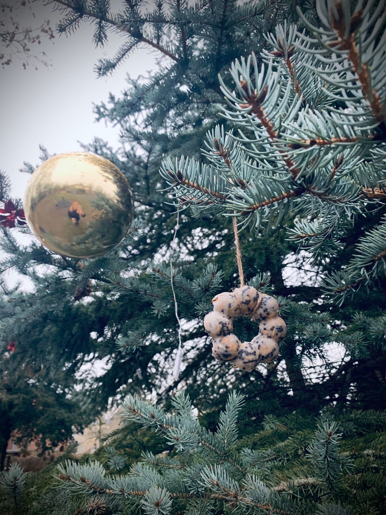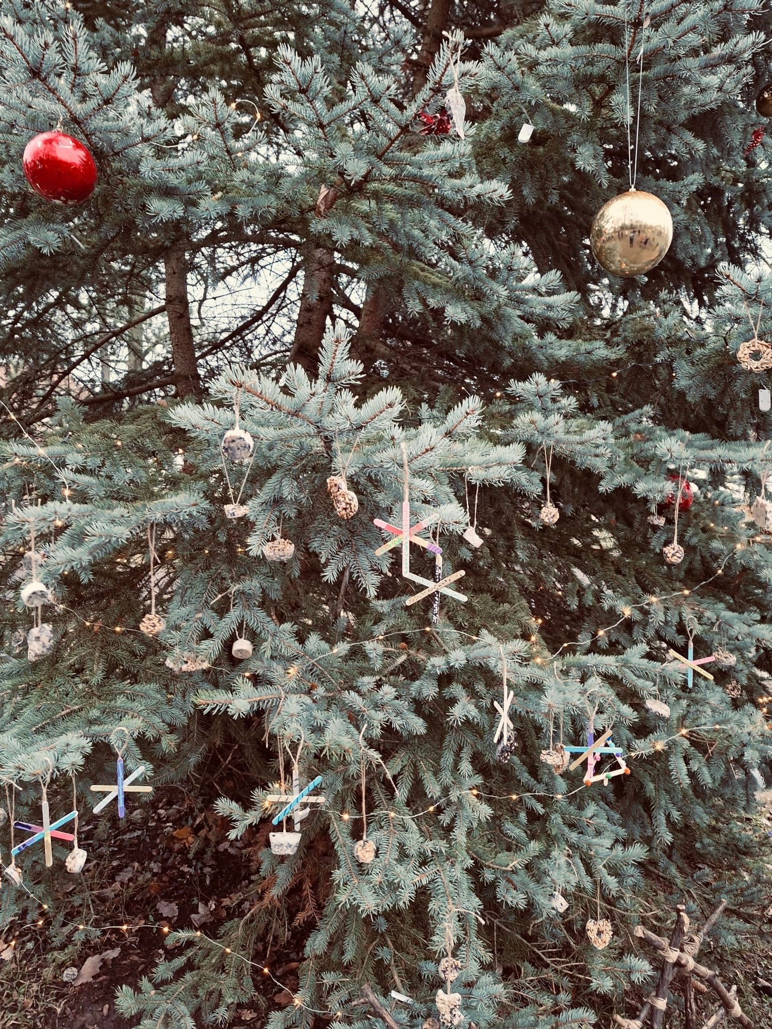 Vogelfutter und Baumschmuck im Schulgarten