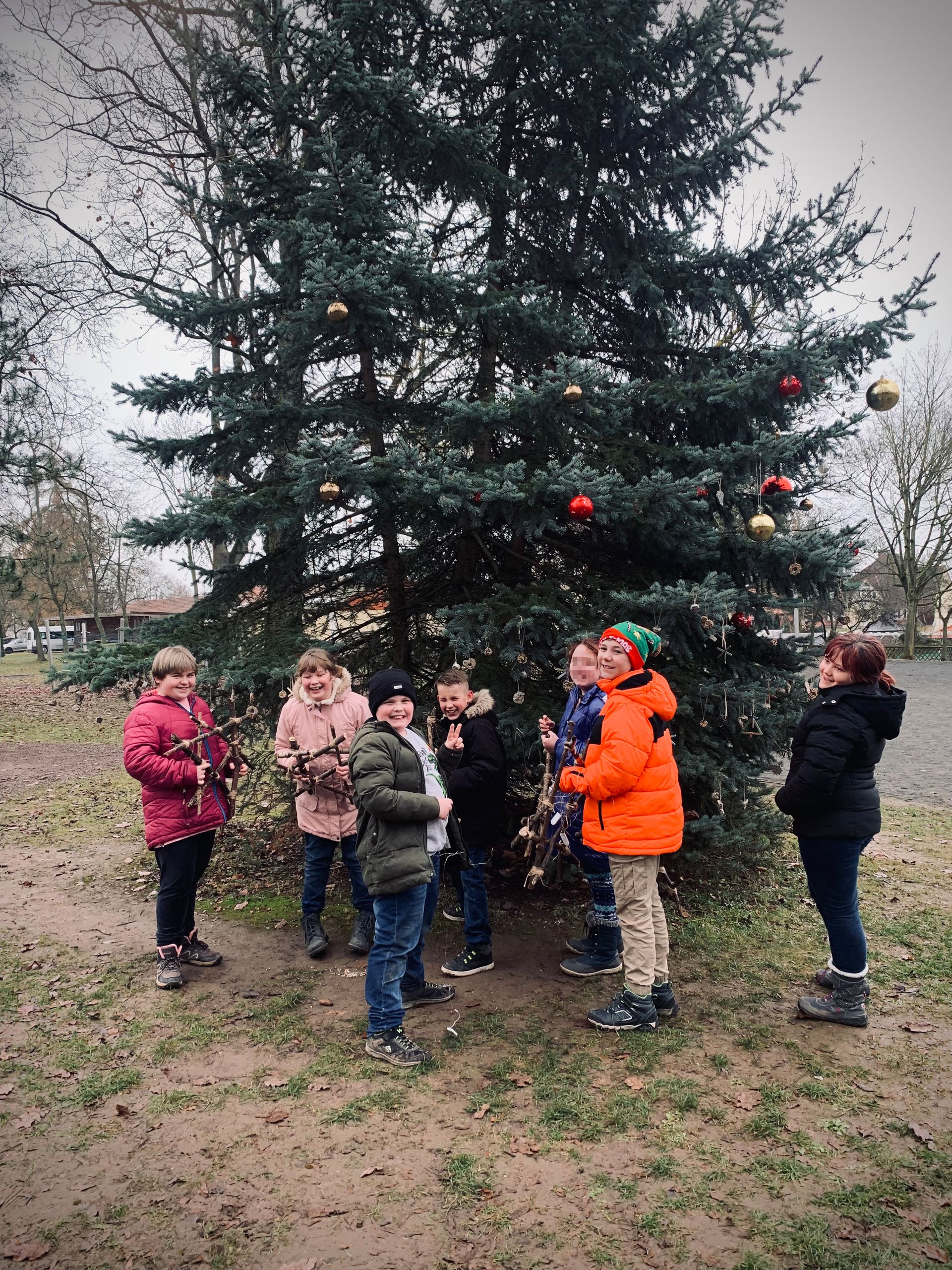 Im Rahmen meines Schulgarten-Unterrichts, haben wir im Dezember die Blautanne auf dem Schulhof mit Vogelfutteranhängern geschmückt. Die Sonnenblumenkerne, die hierin enthalten sind, wurden von den Schülern von unseren "hauseigenen" Sonnenblumen geerntet und in unserer Küche zu Futter verarbeitet, um das Thema Nachhaltigkeit in Verbindung mit "Lebenszyklen von Pflanzen" wieder aufzugreifen. Frau Glashagel hat das Ganze am Ende musikalisch begleitet und so haben wir unser Schulgartenjahr gemeinsam, im schönen Rahmen, abgeschlossen.